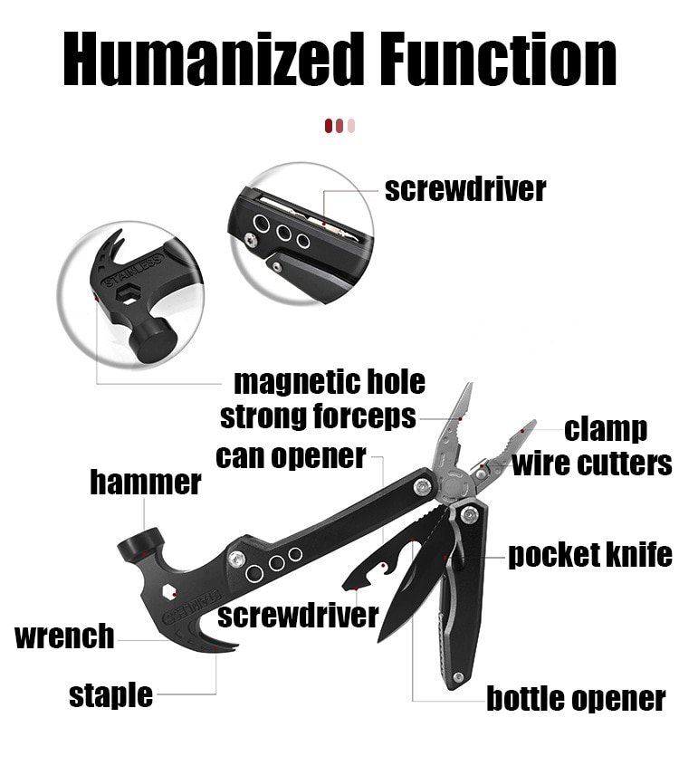 Stainless 5 em 1 – Martelo, Alicate, Chave de Fenda, Chave Philips e Alicate